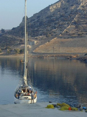 Wir brechen in Richtung Vathi auf Kalimnos auf. Etwas Wind l t uns ca. 1 sm segeln. Doch wir m ssen wieder die Maschine anwerfen, wollen wir heute noch ankommen. Vielleicht klappt es ja morgen. Unser Ziel kenne ich schon von unserem Griechenland urlaub 1981. Wir machen nicht im kleinen Hafen, sondern l ngs an einer Felswand fest. Es ist ein eindrucksvoller Platz.